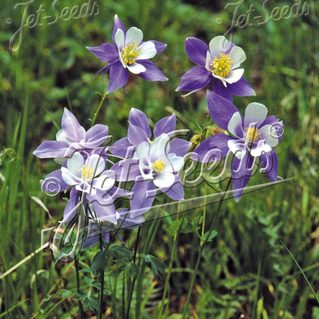 Rocky Mountain columbine with showy flowers featuring long spurs and a striking combination of blue and white, or other pastel shades. Finely divided foliage forms a soft mound that complements the delicate blooms in late spring to early summer. Thrives in partial shade and well-drained, humus-rich soils, especially in cooler climates.