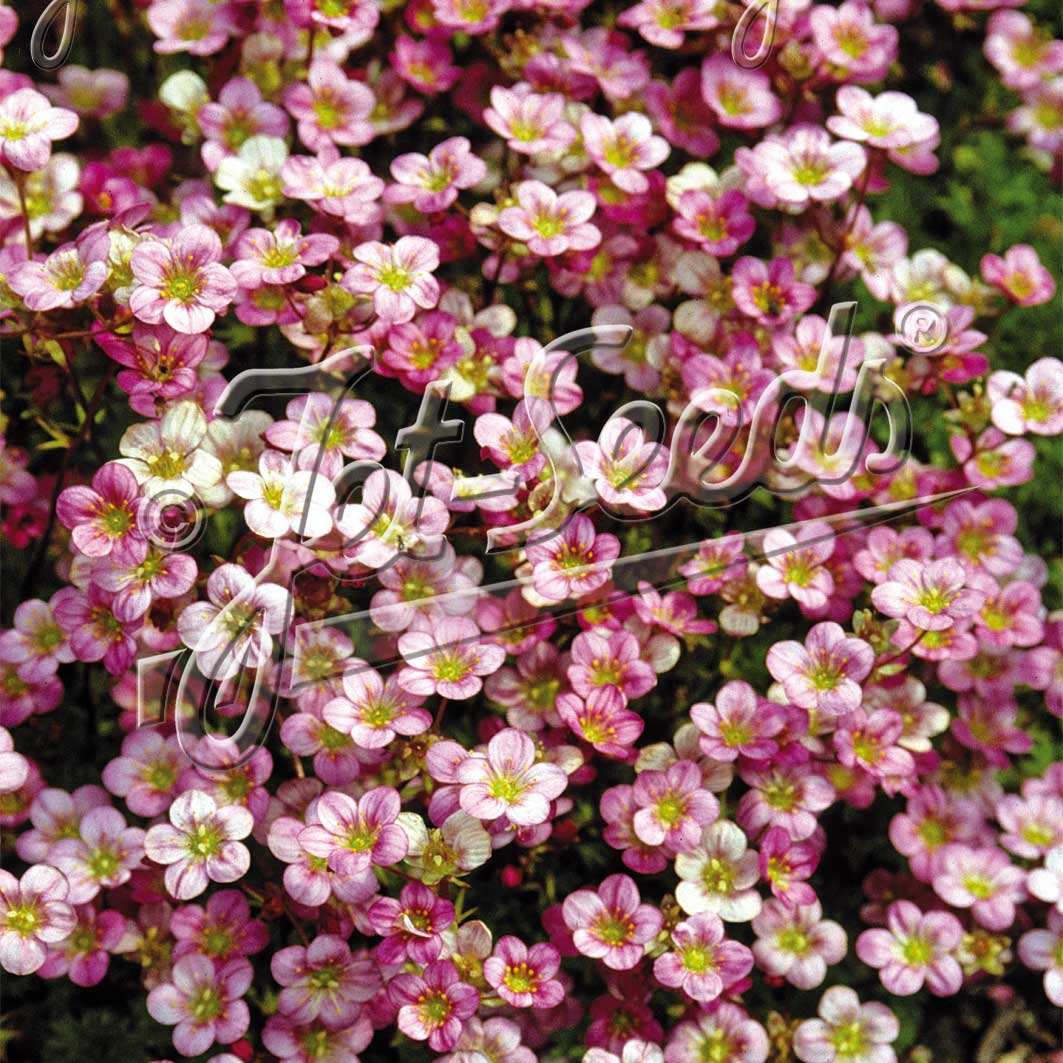 Mat-forming saxifrage with tight cushions of bright green rosettes that produce short stems topped with dainty spring flowers. Ideal for rock gardens, troughs, and crevices where it can slowly knit into a dense, flowering carpet.